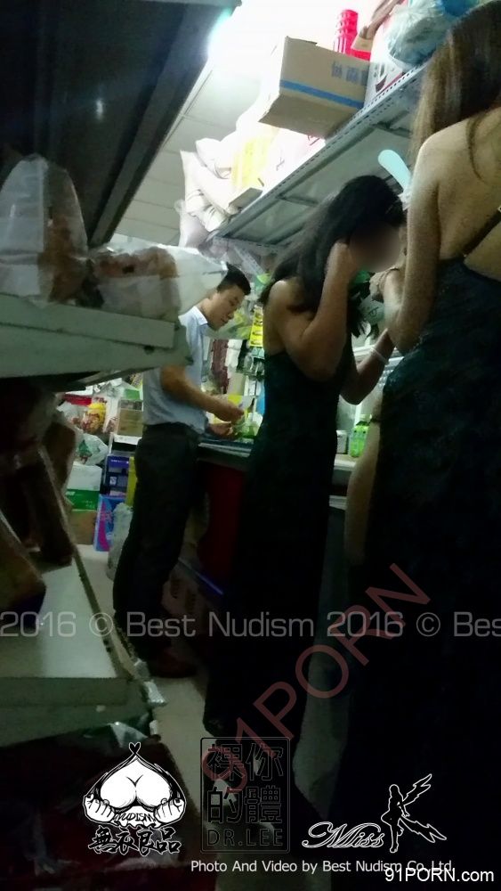 两位美女穿上了同款情趣内衣一起在小超市购物