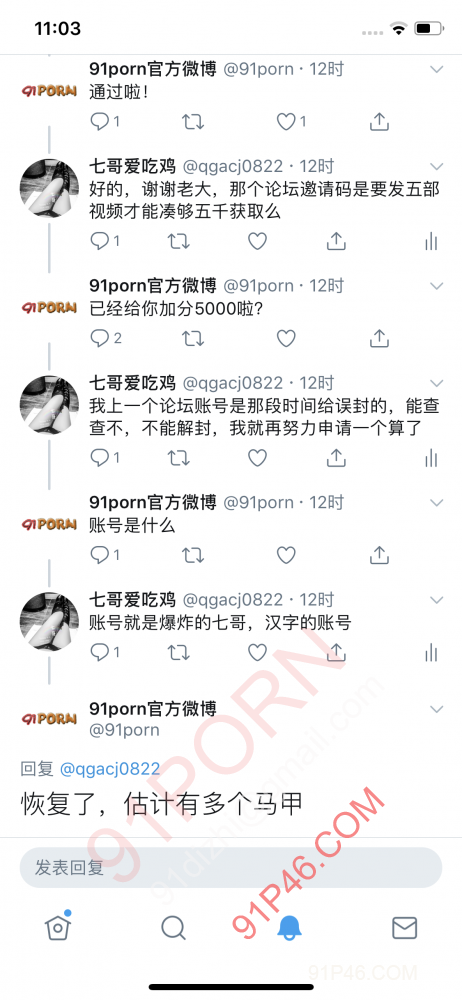 感谢老大翻牌并给予解封! 自从上次被误封就没地方发帖招募,在外流浪,这次邀请码是我上传验证视频加精获取的邀请码,终于重回91大家庭! ,推特@qgacj0822 企鹅,二而三一二九一二三路 不码字直接看图。。。我是真的服了一星期后在特么联系吧,真扯淡我TM都想特么的删帖了,被这个杀币搞自闭了 视频区地址