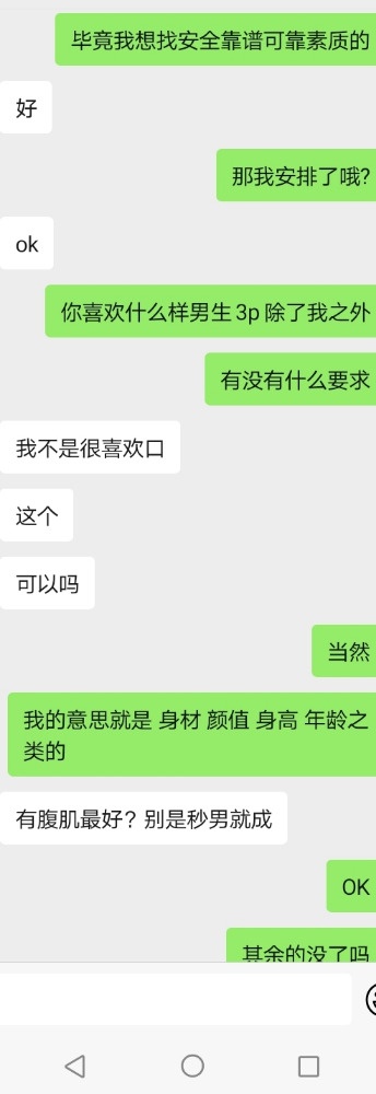 流程:1仔细阅读以上内容,接受我们的要求并且符合就可以添加联系方式 我会把我们收款码给你发过来,支付后我们会同意然后你发送你的介绍和两张照片