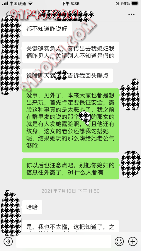 下面进入正题,这个朋友是去年年底的时候加的,当时在论坛认识了几对老家的夫妻情侣,然后我建立了一个小群方便大家交流,这个群目前也会拉人进,但是我会进行认证,认证时间会比较久,主要是确定是不是靠谱的人,情况是否属实。言归正传,其实过完年我们大家在群里都说话比较少了,也就个别人之间偶尔聊几句,我记得当时这个哥们进群也分享过自己媳妇照片,开始还有几个人把自己媳妇拉倒我们群里,其中就有这个哥们,后来媳妇们都不好意思就退群了,然后转折在今年七月份,这个哥们突然联系我,原因是他在91看到一篇帖子有她媳妇露脸照片以为是我发的帖子,然后看了一下帖子发现是骗人的,后面聊天记录会有。因为发现是个骗子我帮这哥们举报了一下帖子,这里不得不说91的管理员们真的很给力,我刚举报帖子就删掉了,这里给91各位管理员一万个赞