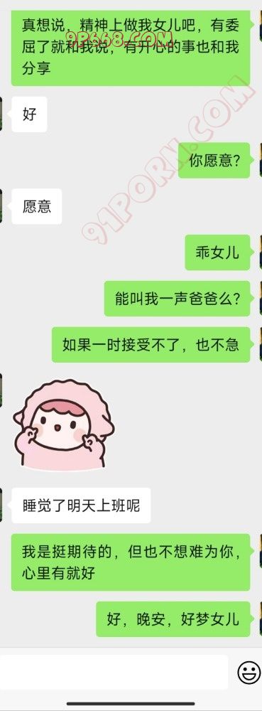 晚上一直没有主动联系我,我看他探探在线,就在微信上问了一下没想到有了点突破,只是不够完美,那一声“爸爸”她没有叫出口