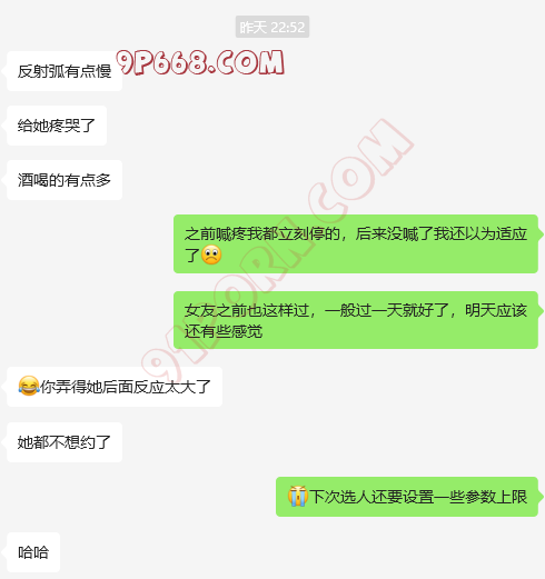 当天晚上快十一点结束,我撤退后,兄弟说女票事后很疼,计划的第二天可能要泡汤,我也表示理解,因为以前遇到过不少这样的事情