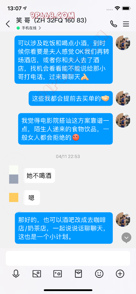这次要分享的2024年四月13号的一次活动,这对夫妻是珠海同城的,32岁左右,之前交流了几天,没想到我和丈夫交流的非常愉快,可能是我比较懂他绿帽的心里状态吧,我们想好了活动内容(电影院陌生人搭讪剧情),然后安排了活动时间,当然这一切对他妻子都是保密的,他妻子应该也会享受这种陌生带来的刺激和兴奋,他妻子只以为是丈夫临时起意想去看电影,其余的内容一无所知。
