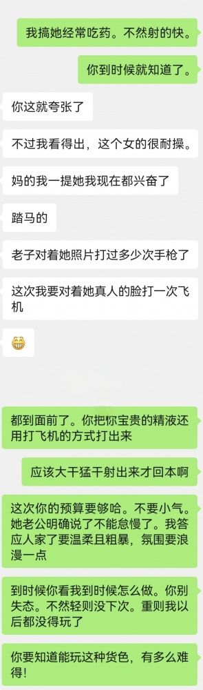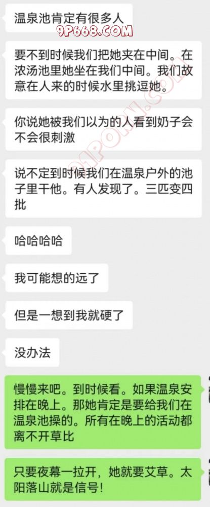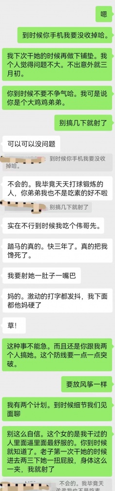 两大淫贼的谋划越来越具体,看的我是血脉膨胀~ 这种感觉又有点第一次老婆跟老崔偷情前老崔向我汇报情况的感觉了~
