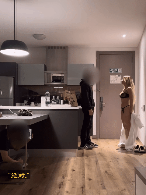 丝毫没有停歇脱掉浴袍,展示着透视的内衣遮挡下的胴体。