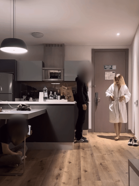 虽然光线不太好,但还是展示下索菲的浴袍之下。
