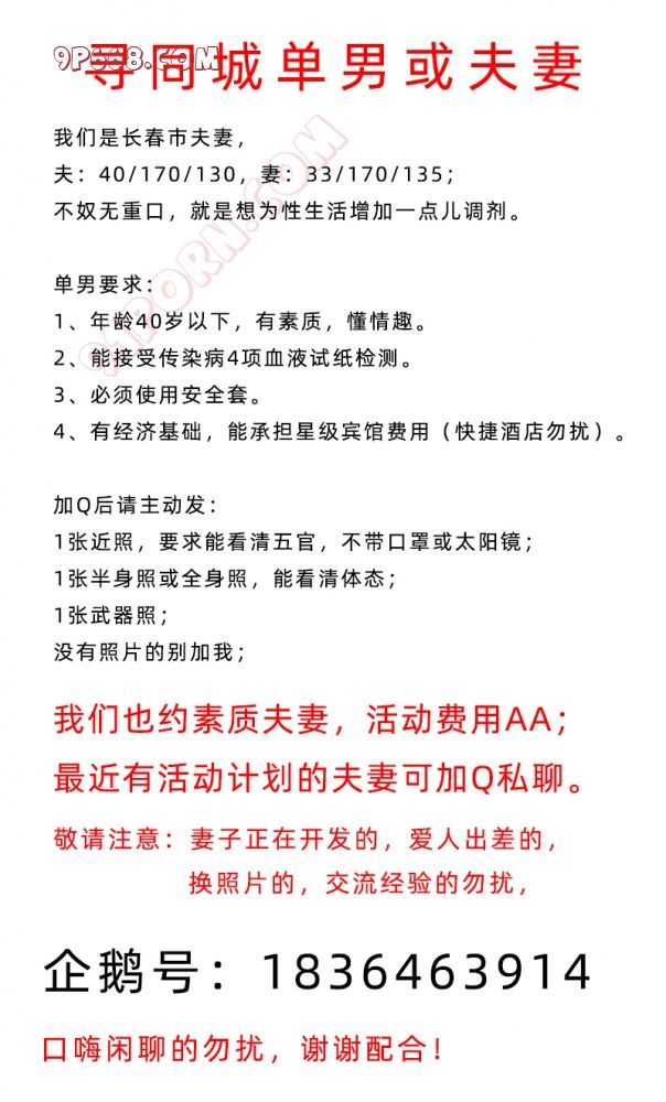 0431 长春夫妻诚寻同城夫妻或单男 发帖
