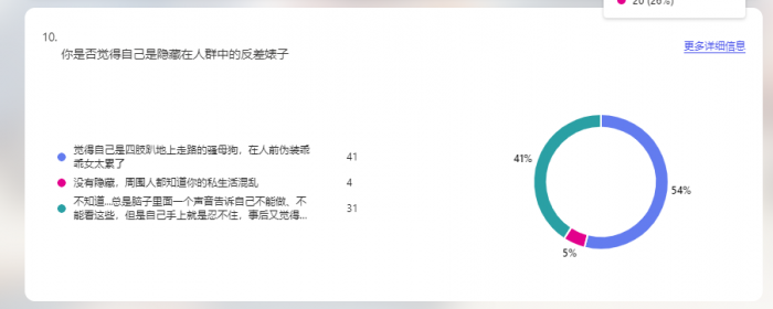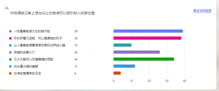自评表是挺有意思的,但是数据的可靠性不确定。毕竟谁都可以填,并不知道填表人的真实性别,有可能很多是大老爷们意淫的。